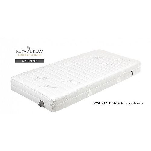 Schlafkomfort, der sich anpasst – für jede Lage die richtige Unterstützung. Die Kaltschaum-Matratze ROYAL DREAM 200-S bietet aktiven Schläfern punktelastischen Komfort und ein ausge-glichenes Schlafklima. Der AQUAPUR®-Schaum mit ergonomischem Würfel-schnitt passt sich flexibel an und leitet überschüssige Wärme effektiv ab. Der atmungsaktive Bezug mit Hygienevlies sorgt für ein angenehm trockenes Liege-gefühl – ideal für erholsamen Schlaf in je-der Position.