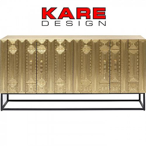 Holen Sie sich mehr als einen Hauch von Luxus ins Haus! Das elegante Sideboard besticht durch seine Kontraste: zwischen dem königlichen Messing und schlichtem Schwarz sowie zwischen der geradlinigen Form und der kunstvoll verzierten, teilweise in Handarbeit gefertigten Front. Die Türen sind zudem mit Soft-Close-Funktion ausgestattet.