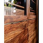 Korpus: Sheesham Massivholz lackiert, Rückwand: mitteldichte Faserplatte naturbelassen, Fuß/Füße: Stahl pulverbeschichtet, Tür: Glas klar, 50 kg max. Belastbarkeit, Lieferung zerlegt, Pflege und Reinigung: Art. 25002 Möbel Kur